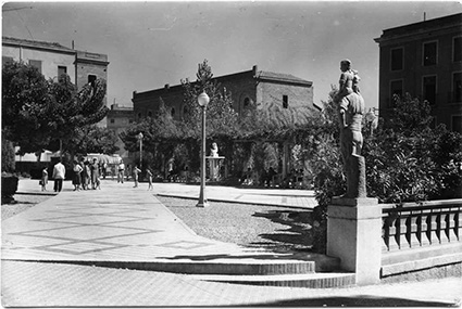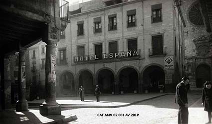 L'Edifici frontal era el del convent de les monges i al mateix costat hi havia la Xurreria Palau, on anàvem a buscar patates fregides i xurros. A l'altre costat del carrer de les Monges i havia el local, Educación y Descanso, de la falange. Un lloc que per a nosaltres era d'esbarjo.
